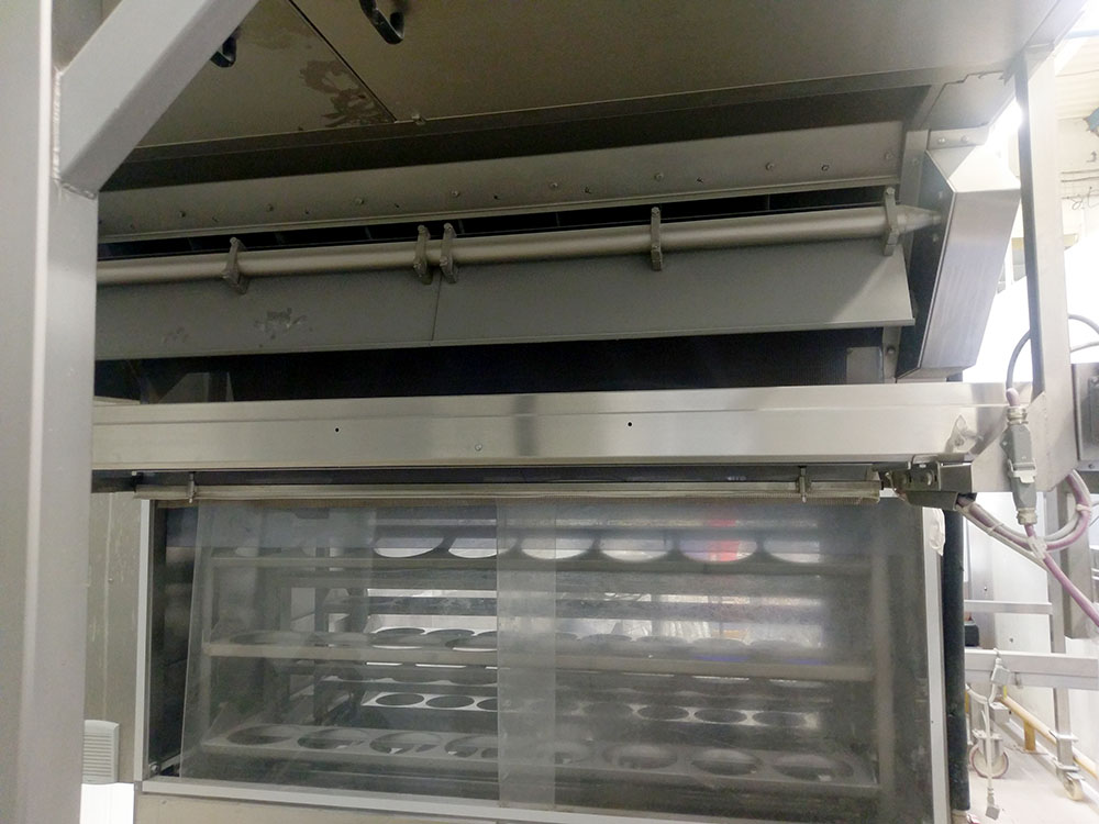 • Gouet proofer, 28 decks, capacity 448 tins (600*800mm) product height approx. 135 mm. 120 minutes proofing time, including Hydronic climate unit with electrical heating, glycol cooling and steam injection.