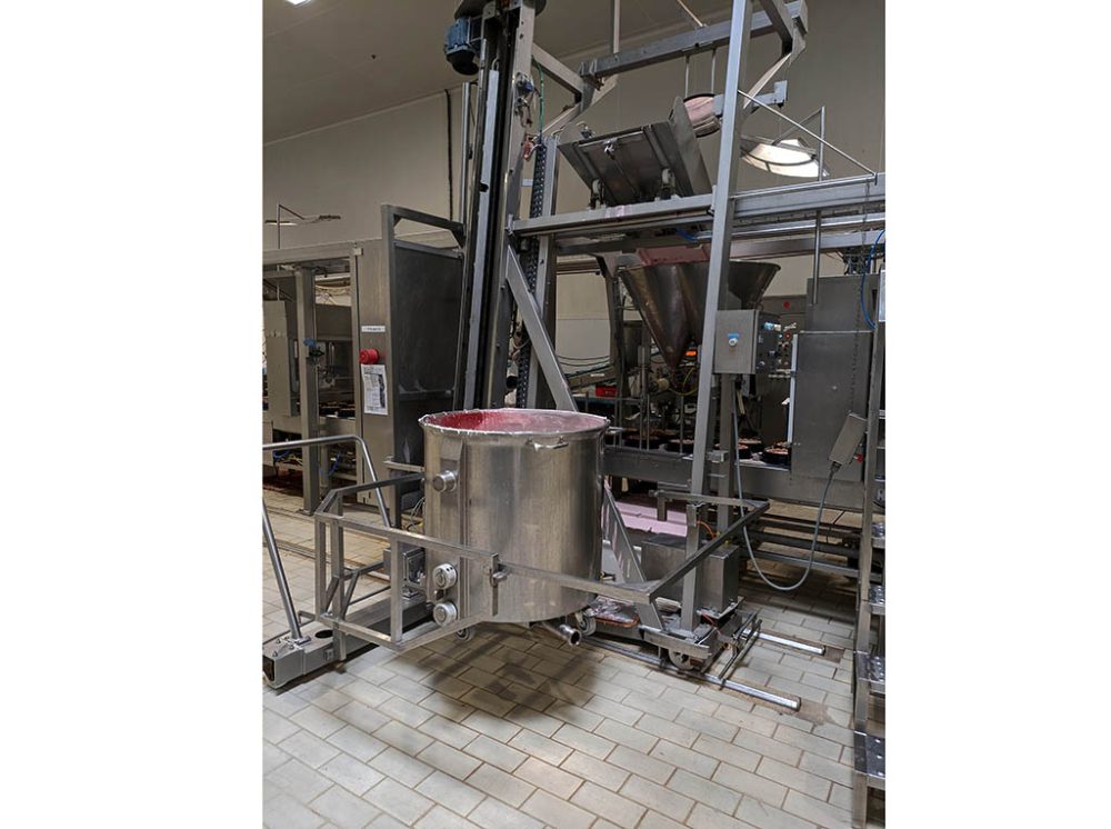 Bowltipper, on movable frame to feed the 3 depositors