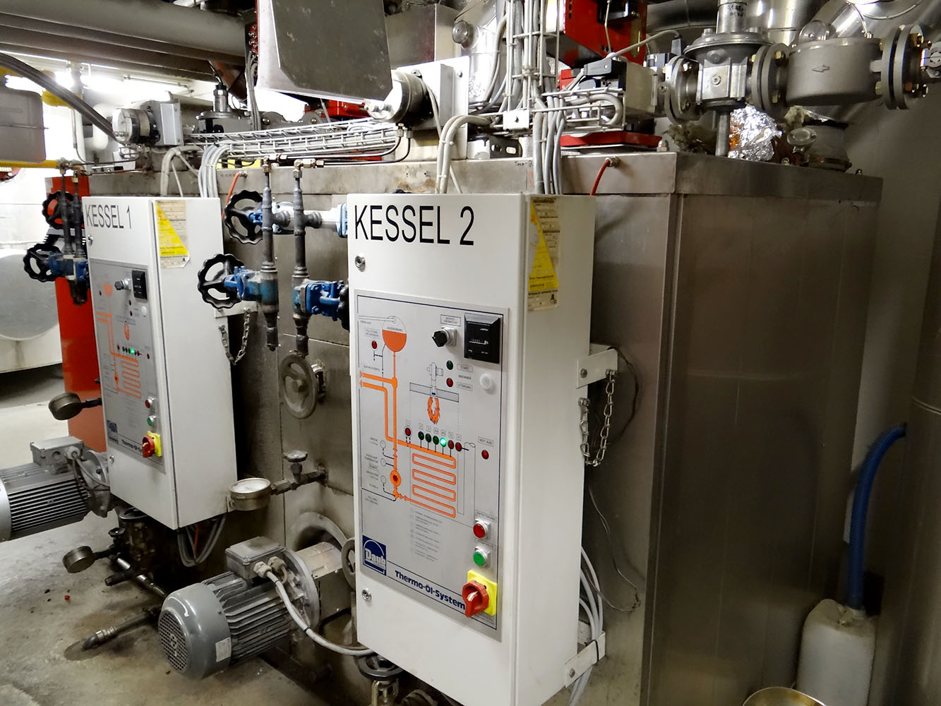 Thermo oil installation with 2 Daub boilers KTO 300, 5 tanks each 500 liters, expansion vessels, piping