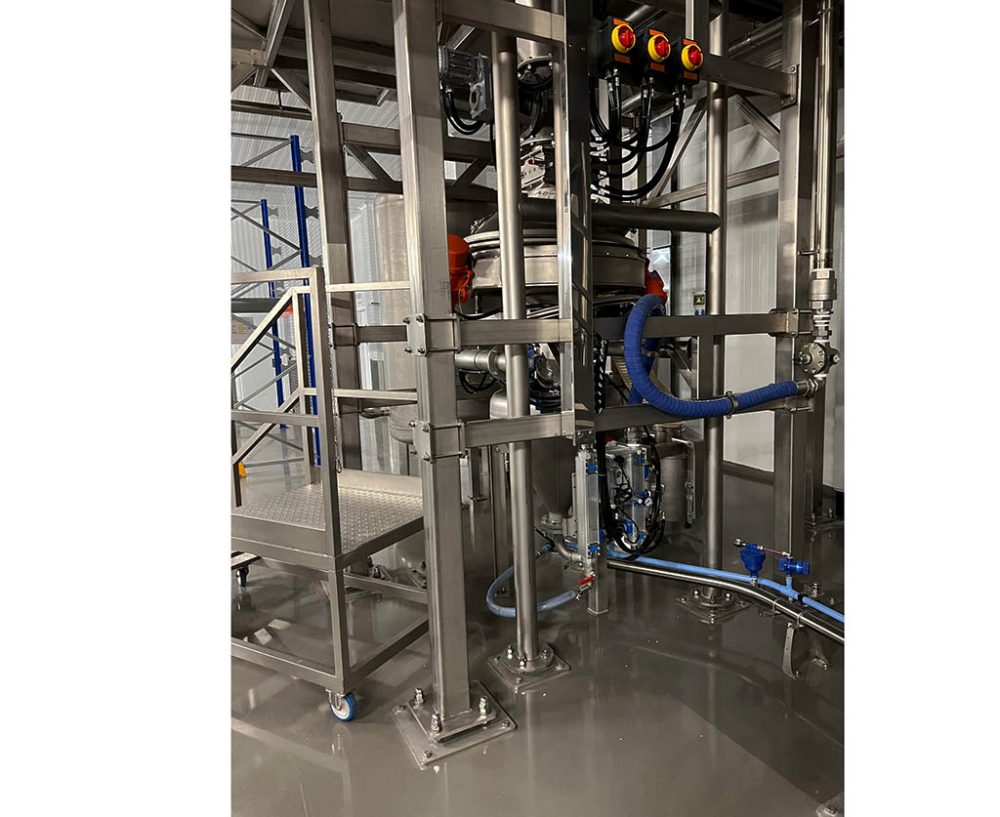 After sieving the batch, it accumulates in the impulsion tank for temporary storage of the ingredients Before dosing it to the production lines.