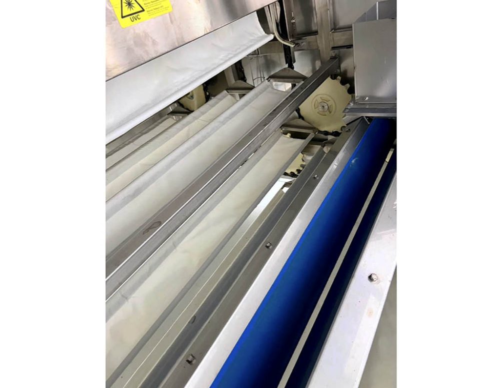 AF 2002 Intermediate proofer, swings with perforated cloths, can handle rounded and long dough pieces, outfeed by retracting belt with V- flaps